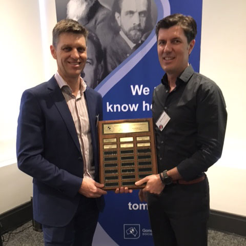 Dr David Leach of New Farm Chiropractic has been a GCS(Aust) Diplomate for over 15 years, and this year was accepted as a Fellow of the society. Dr Leach is now qualified to teach the Gonstead System at the GCS(Aust) Seminars and workshops. To achieve this honour, Dr Leach has several years experience of supervised teaching, and submitted a case study of 20 patients regarding the case management of coccyx pain. His case study was awarded the David Byrnes Memorial Award for Clinical Excellence. A great achievement!